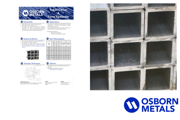 Pour répondre aux besoins des applications exigeantes, comme pour du matériel agricole, Osborn Metals dispose d’un catalogue de tubes carrés de forte épaisseur.